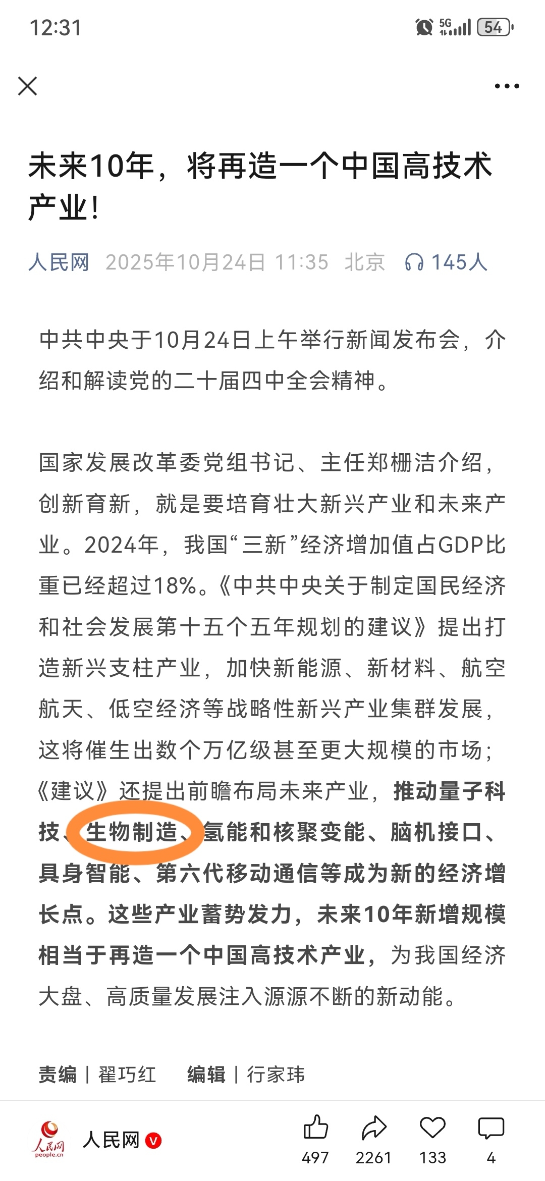 十五五规划:再造一个中国高技术产业生物制造未被引爆的热点赛道