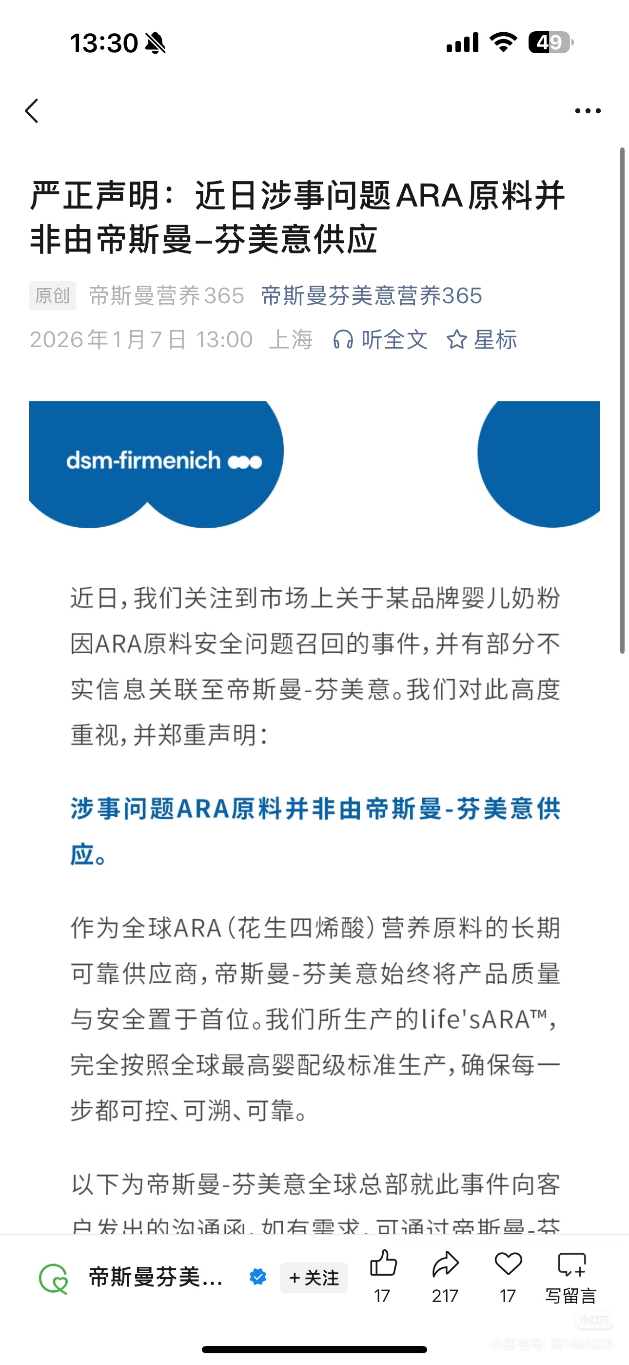 $嘉必优(SH688089)$ 跑吧,帝斯曼发公告了