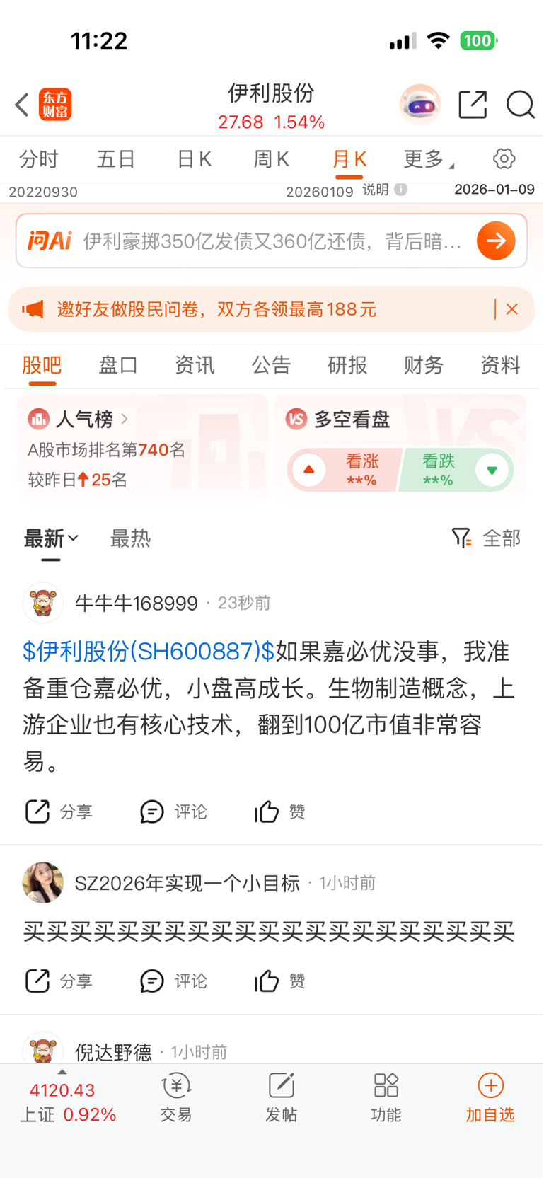 $嘉必优(SH688089)$ 去伊利的股吧发了个