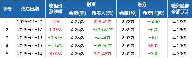 上海谊众:融资净买入228.49万元,融资余额4.27亿元(01-20)
