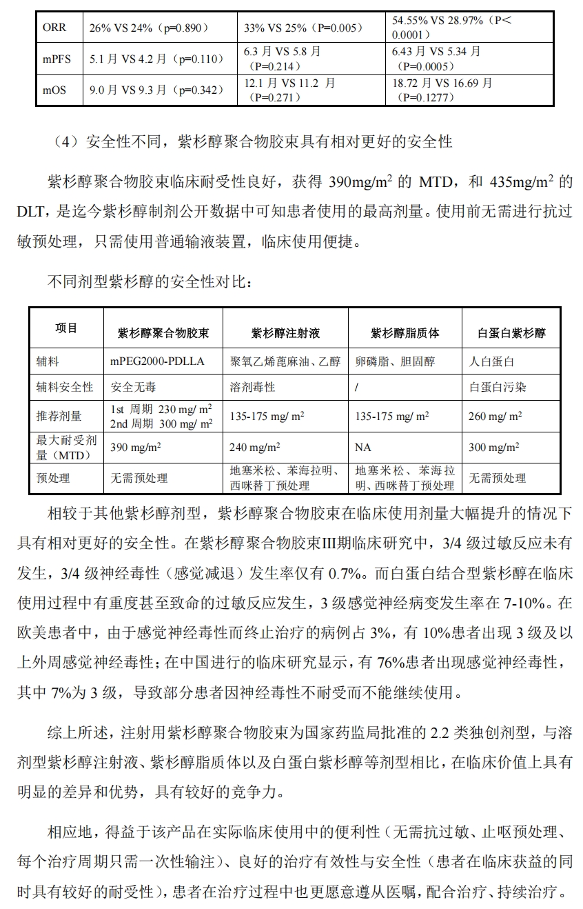 (3)疗效不同,紫杉醇聚合物胶束疗效显著提高