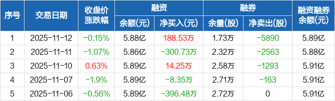 上海谊众:融资净买入188.53万元,融资余额5.88亿元(11-12)