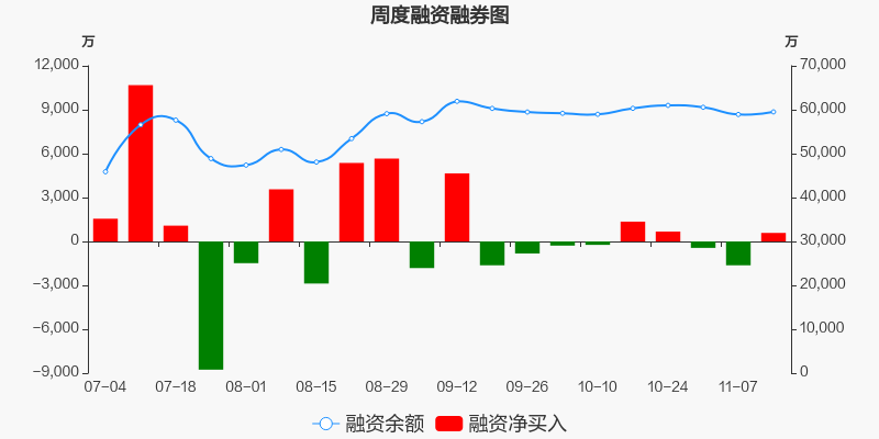 上海谊众本周(2025/11/10-2025/11/14)累计涨幅达5.82%,截至11月14日最新股价报收55.05元。从增量上来看,11月10日至11月14日融资买入交易规模1.01亿元,融资偿还规模9491.71万元,期内融资净买入582.41万元。从存量上来看,截止11月16日,上海谊众融资融券余额5.96亿元,其中融资余额规模5.95亿元,融券余额规模56.81万元。
