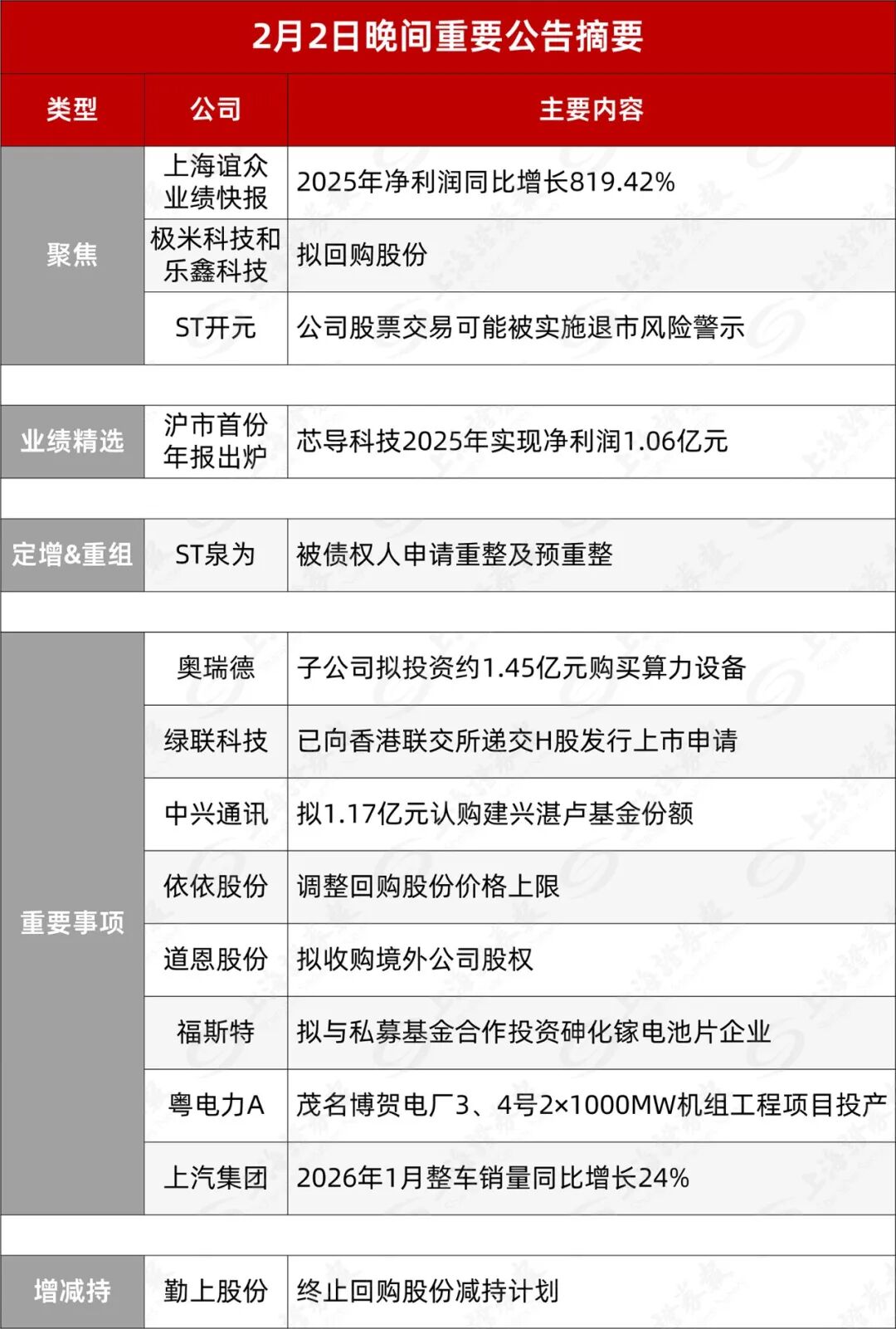 勤上股份:公司原计划自2025年11月19日至2026年5月19日通过集中竞价交易方式减持已回购的A股股份1649.87万股,占公司总股本的1.15%。截至目前,公司上述回购股份减持计划尚未实施。为稳定公司股价,维护股东利益,增强投资者信心,公司于2026年2月2日召开董事会会议审议通过《关于终止回购股份减持计划的议案》,公司决定终止上述回购股份减持计划。