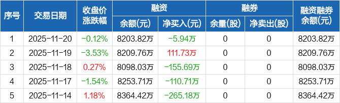 爱科科技:融资净偿还5.94万元,融资余额8203.82万元(11-20)