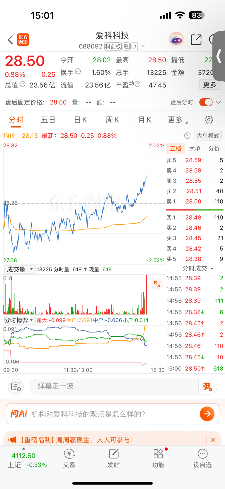 $爱科科技(SH688092)$ 今天AK继续表现良好。随着大盘低开,AK仅有近二十分钟的下调时间。此后一直沿着上升通道运行,抛压较少。尾盘放量最高价收盘。不错!