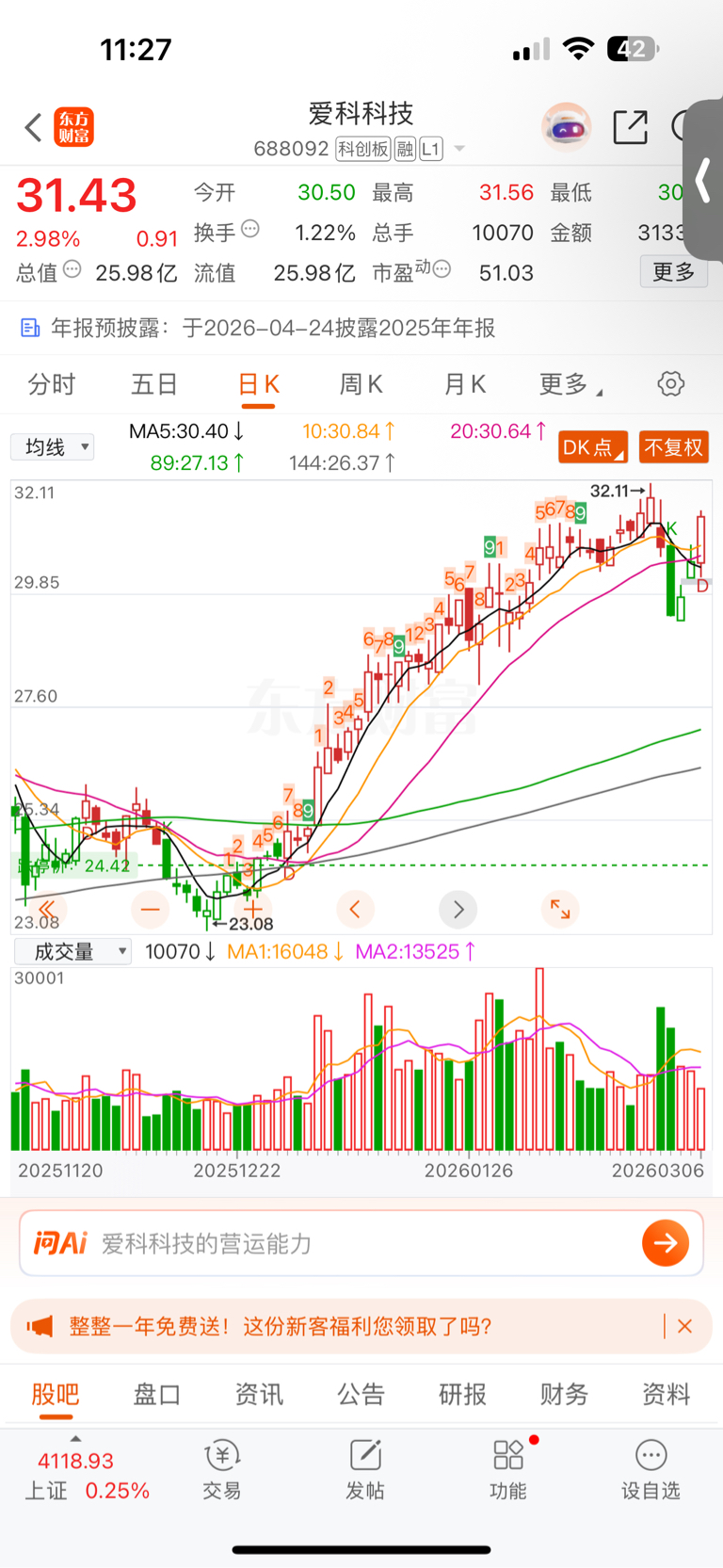 $爱科科技(SH688092)$ AK回调结束,上升买入信号已出现!