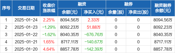 世华科技:融资净买入2.33万元,融资余额8094.56万元(01-24)