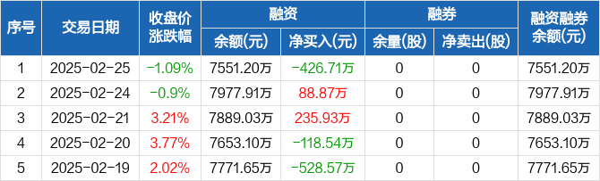 世华科技:融资净偿还426.71万元,融资余额7551.2万元(02-25)