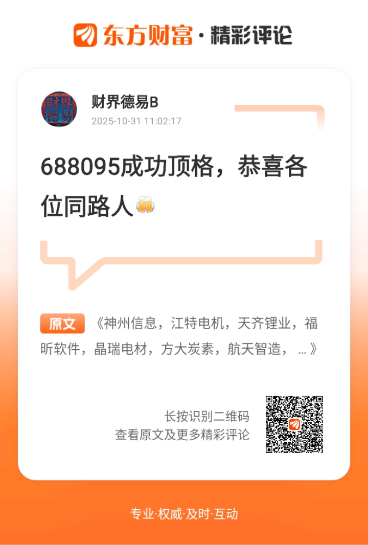 发表于 2025-10-31 11:10:41 东方财富Android版 发布于 上海