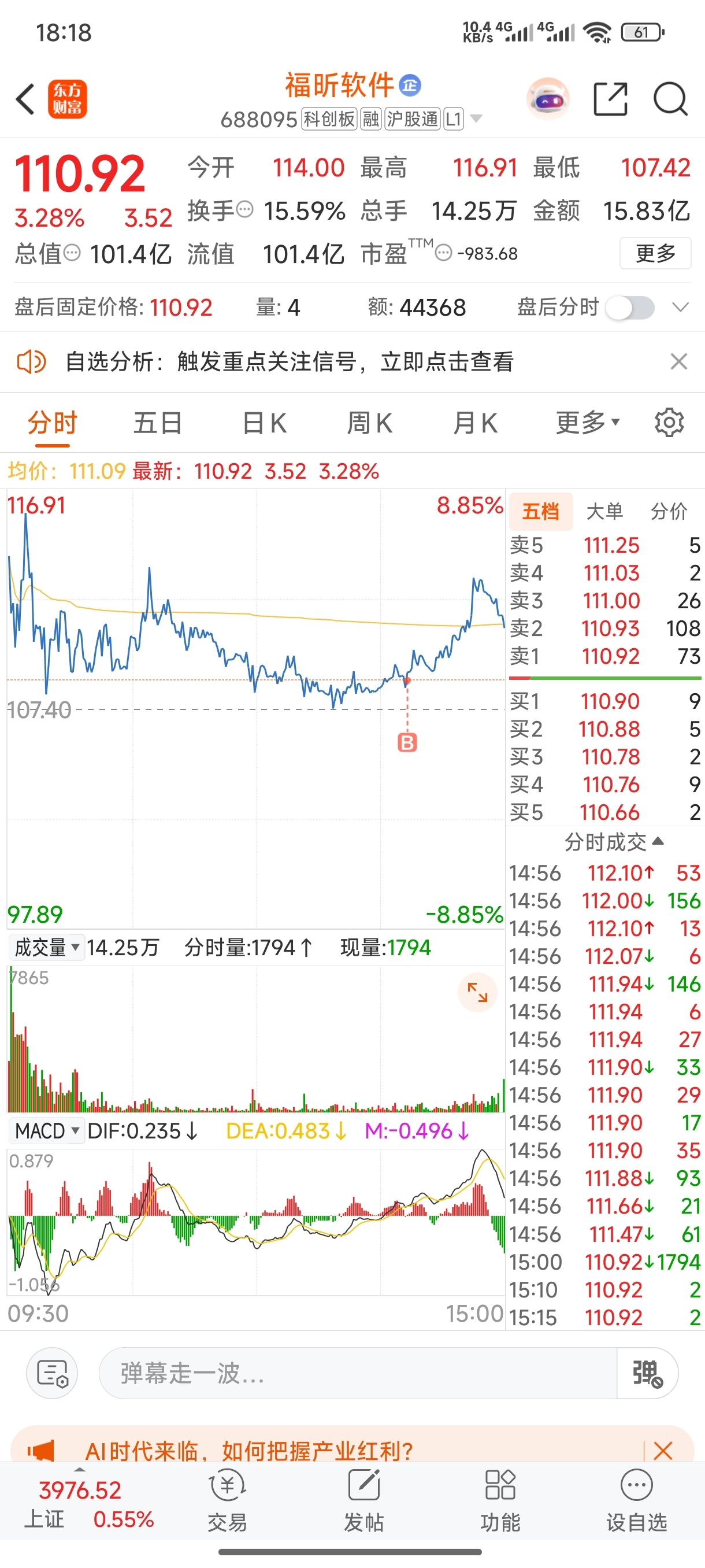 $福昕软件(SH688095)$ 新开仓,看看明天早盘有溢价不