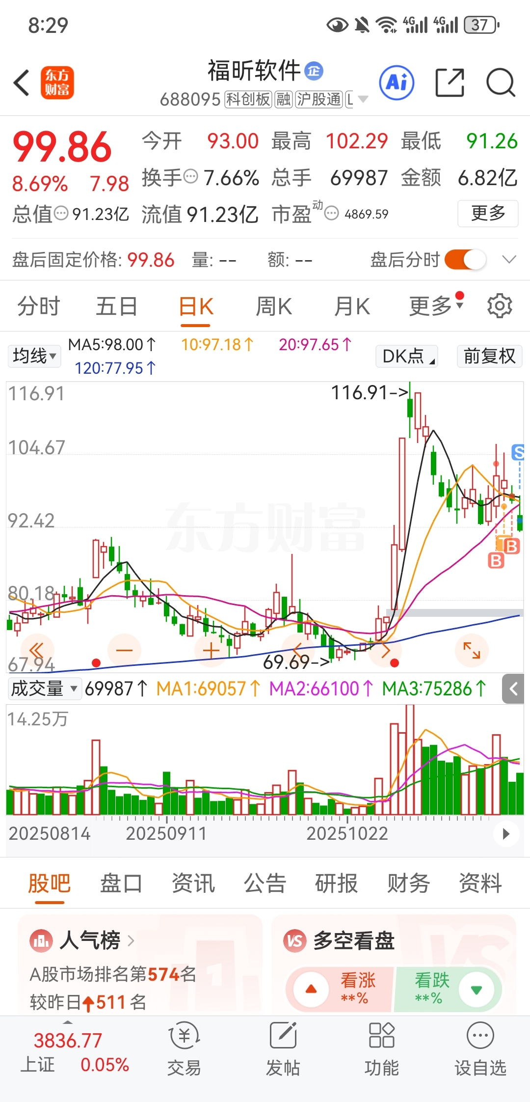 $福昕软件(SH688095)$ 唉没那个命啊,上周五看到它跌破20天线以为还要跌就跑了,宝宝心里苦啊