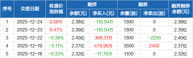 福昕软件:融资净偿还116.94万元,融资余额2.38亿元(12-24)