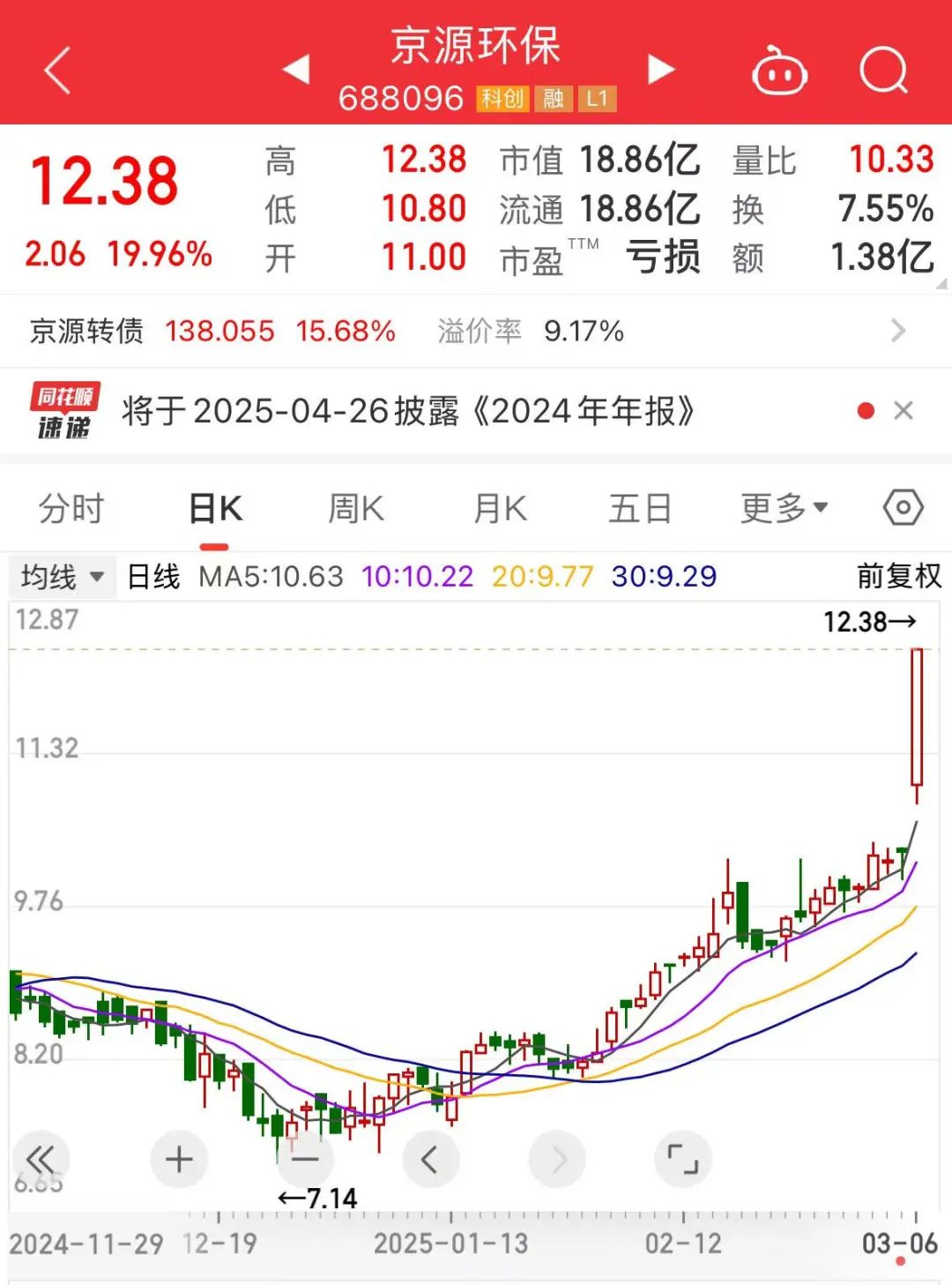 与蓝耘科技相关的A股公司早盘开盘大涨,其中浙文互联开盘巨量涨停。截至上午收盘,浙文互联报9.68元,上涨10%,市值144亿元。京源环保高开高走,9点46分即封上“20cm”涨停,市值近19亿元。