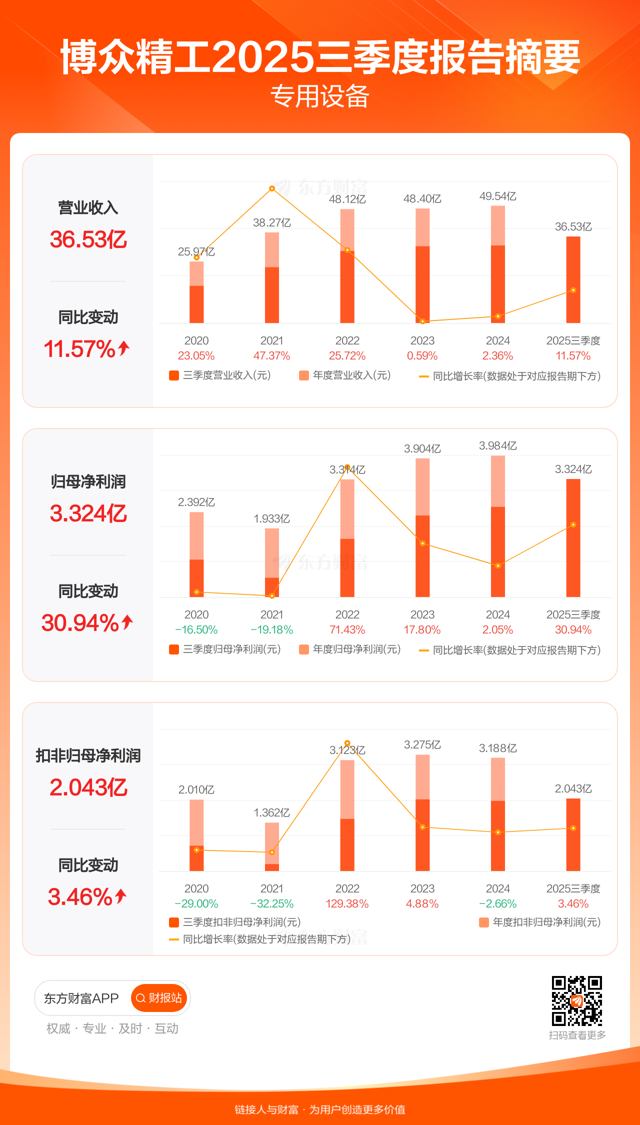 博众精工10月31日发布2025年三季报显示,公司前三季实现营业收入36.53亿元,同比增长11.57%;归母净利润3.32亿元,同比增长30.94%;扣非归母净利润2.04亿元,同比增长3.46%。