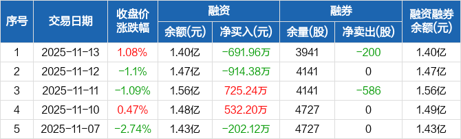 博众精工:融资余额1.4亿元,创近一年新低(11-13)