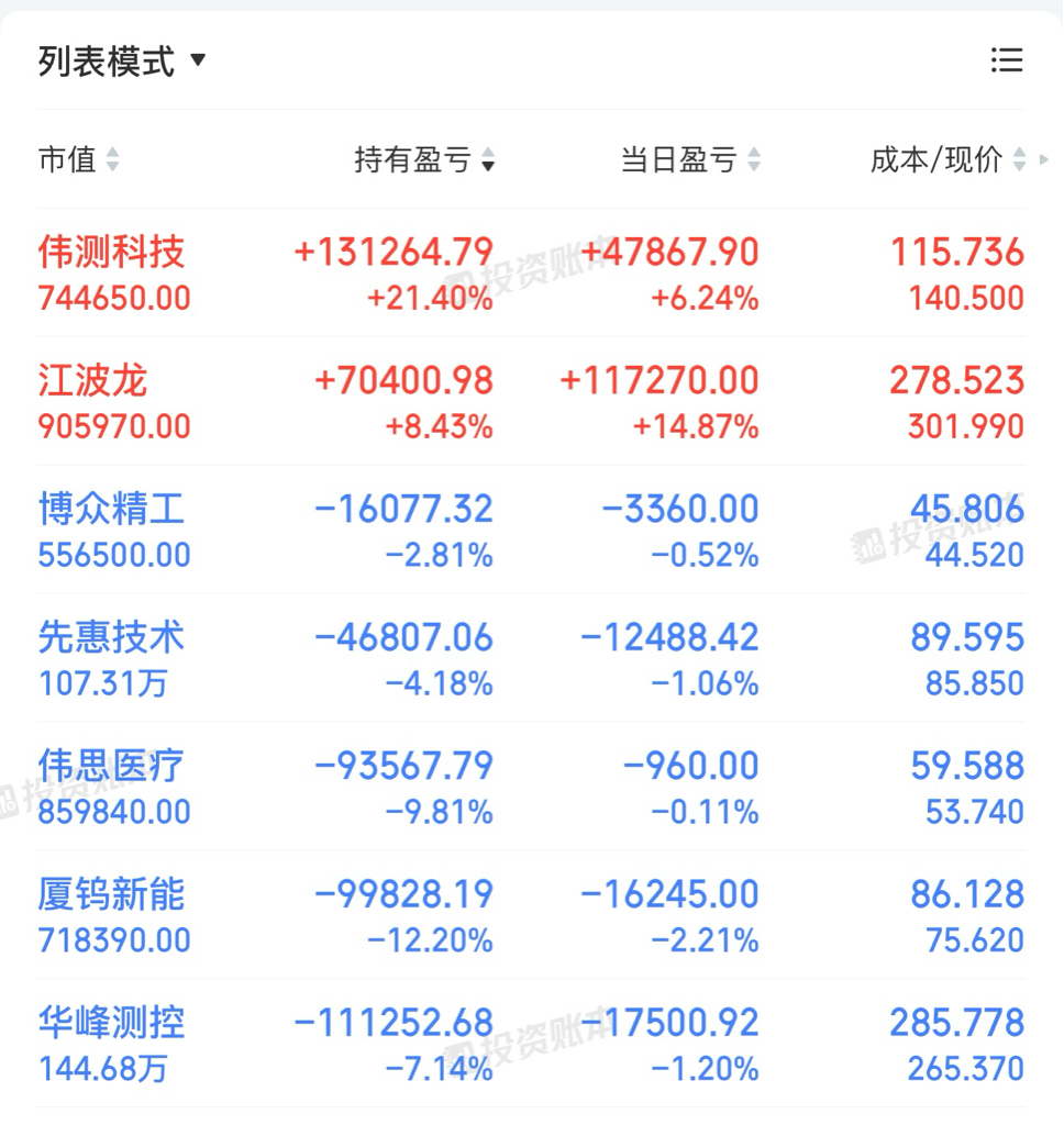 没啥好说了,硬扛......今天加仓了先惠技术和博众精工,小幅减仓伟测科技。