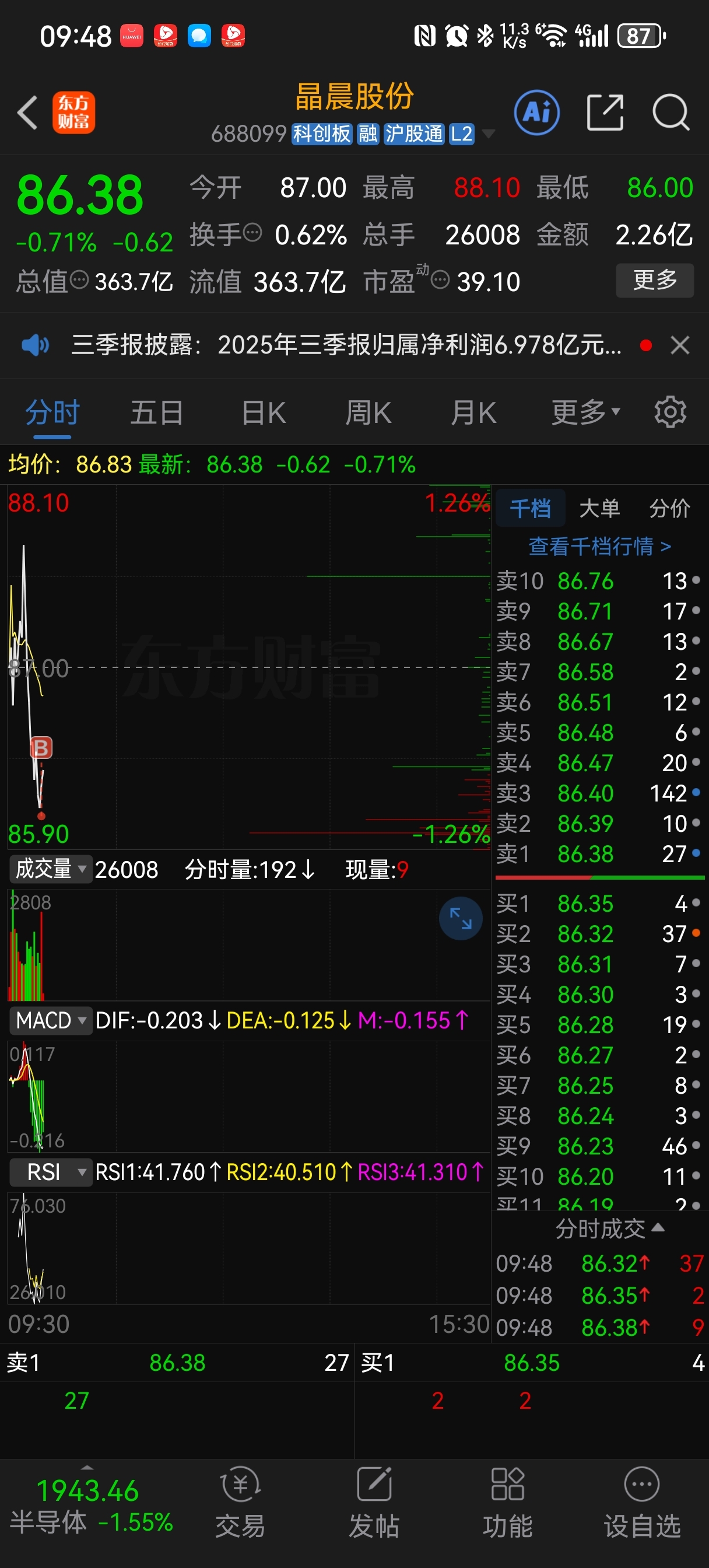 $晶晨股份(SH688099)$  今天上午86.1买了500股建个底仓。争取跌到78,加油