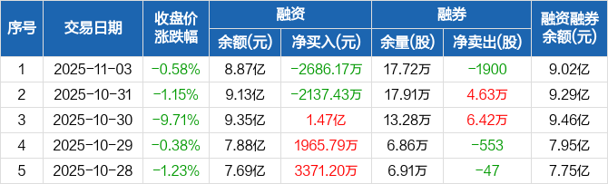 晶晨股份:融资净偿还2686.17万元,融资余额8.87亿元(11-03)