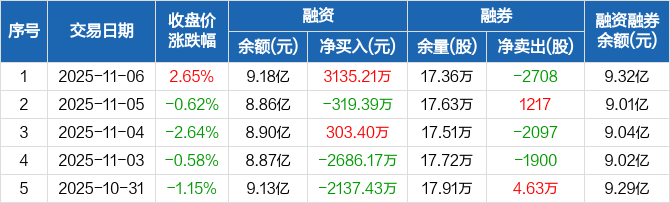 晶晨股份:融资净买入3135.21万元,融资余额9.18亿元(11-06)
