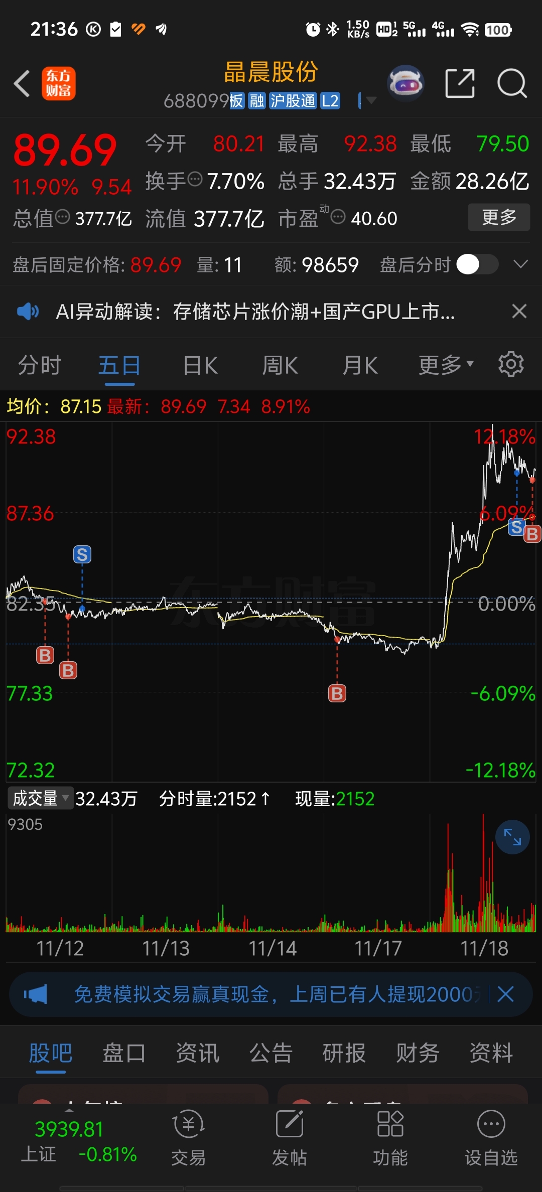 $晶晨股份(SH688099)$ 一股不卖,适当T