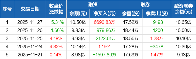 晶晨股份:融资净买入6690.83万元,融资余额10.5亿元(11-27)