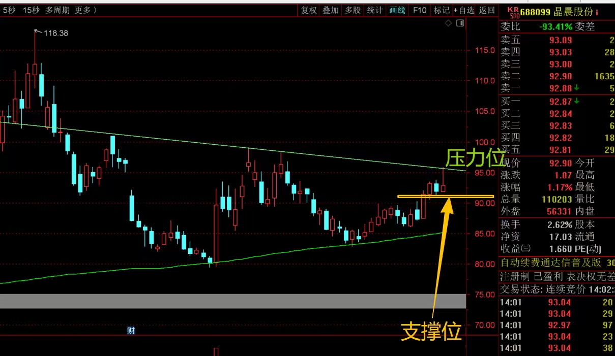 $晶晨股份(SH688099)$ 近期走势反弹得还行,短线这里重点看能否带量突破头上趋势线的压制,能突破站稳就舒服了,可以加仓跟随,但如果不能突破,回落下来就要看脚底横线位置的支撑了,能稳住就还能震荡,有效跌破就要控制仓位做防守了。#炒股日记# #收盘点评#
