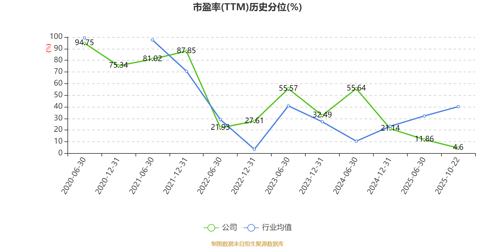 市盈率、市净率为负时,不显示当期分位数,会导致折线图中断。