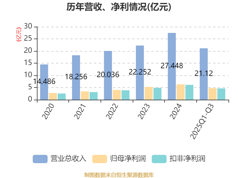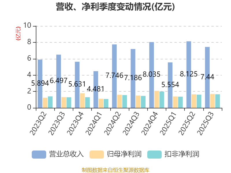 2025年前三季度,公司流动比率为2.21,速动比率为2.06。