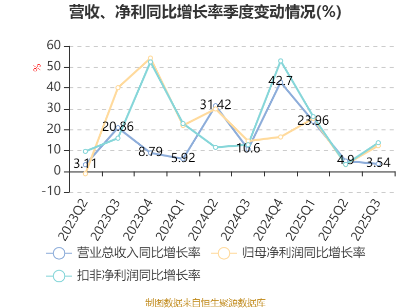资产重大变化方面,截至2025年三季度末,公司货币资金较上年末减少28.03%,占公司总资产比重下降12.79个百分点;应收票据及应收账款较上年末增加39.85%,占公司总资产比重上升9.74个百分点;交易性金融资产合计较上年末增加356%,占公司总资产比重上升3.17个百分点;固定资产较上年末增加47.31%,占公司总资产比重上升1.86个百分点。