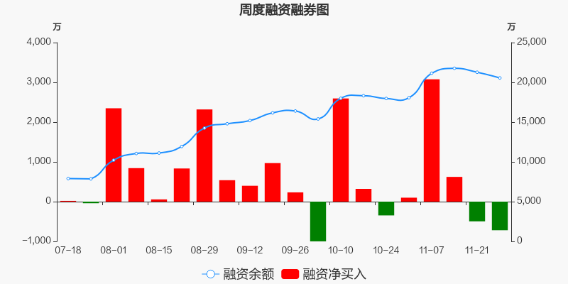 威胜信息本周(2025/11/24-2025/11/28)累计涨幅达0.43%,截至11月28日最新股价报收35.04元。从增量上来看,11月24日至11月28日融资买入交易规模4230.19万元,融资偿还规模4949.43万元,期内融资净偿还719.25万元。从存量上来看,截止11月30日,威胜信息融资融券余额2.09亿元,其中融资余额规模2.06亿元,融券余额规模340.86万元。