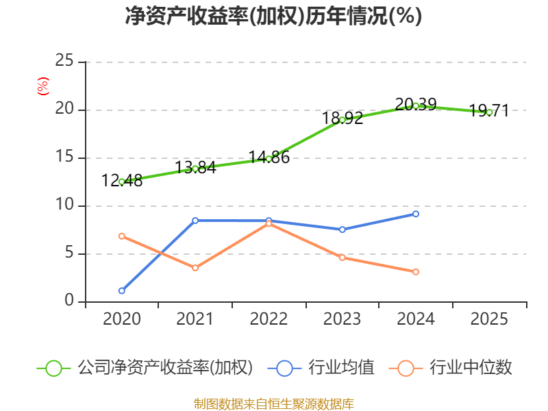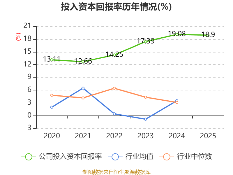 数据显示,2025年公司加权平均净资产收益率为19.71%,较上年同期下降0.68个百分点。公司2025年投入资本回报率为18.9%,较上年同期下降0.18个百分点。