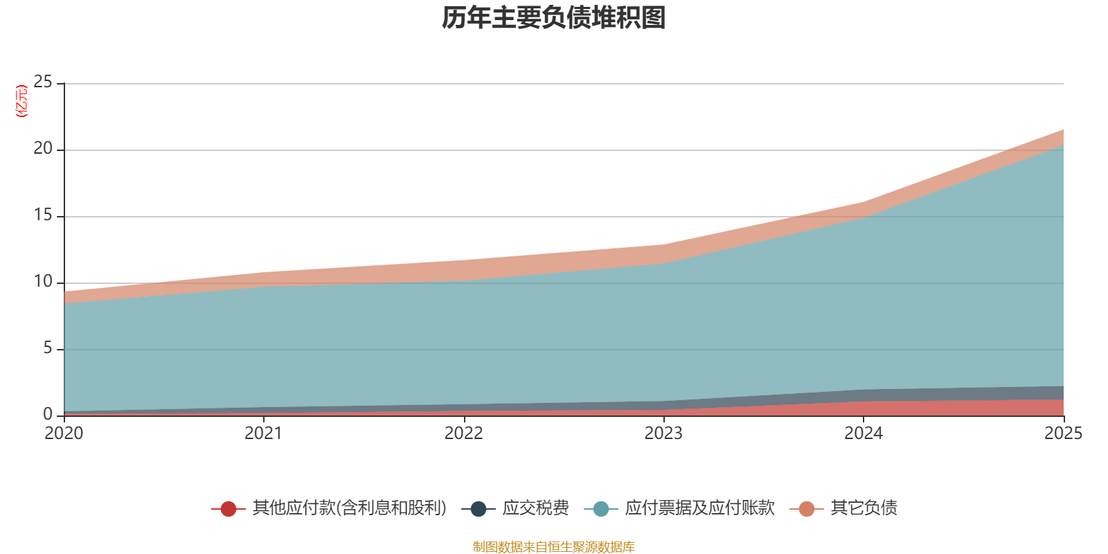 负债重大变化方面,截至2025年末,公司应付票据及应付账款较上年末增加40.31%,占公司总资产比重上升5.79个百分点;交易性金融负债合计较上年末减少100%,占公司总资产比重下降0.29个百分点;长期递延收益较上年末增加244.84%,占公司总资产比重上升0.13个百分点;合同负债较上年末减少7.49%,占公司总资产比重下降0.12个百分点。