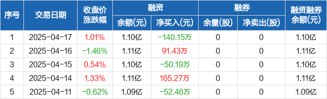 三达膜:融资净偿还140.15万元,融资余额1.1亿元(04-17)