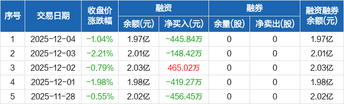 三达膜:融资净偿还445.84万元,融资余额1.97亿元(12-04)