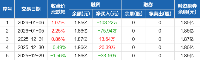三达膜:融资净偿还103.22万元,融资余额1.85亿元(01-06)