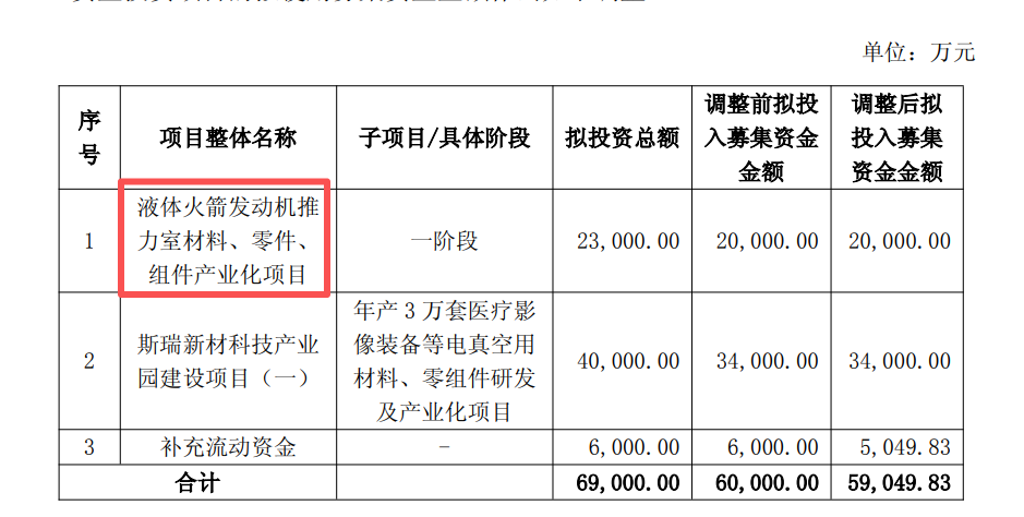 之前的定增都结束了,卡点卡的真好,准备扩产火箭发动机推力室材料、零件、组件。