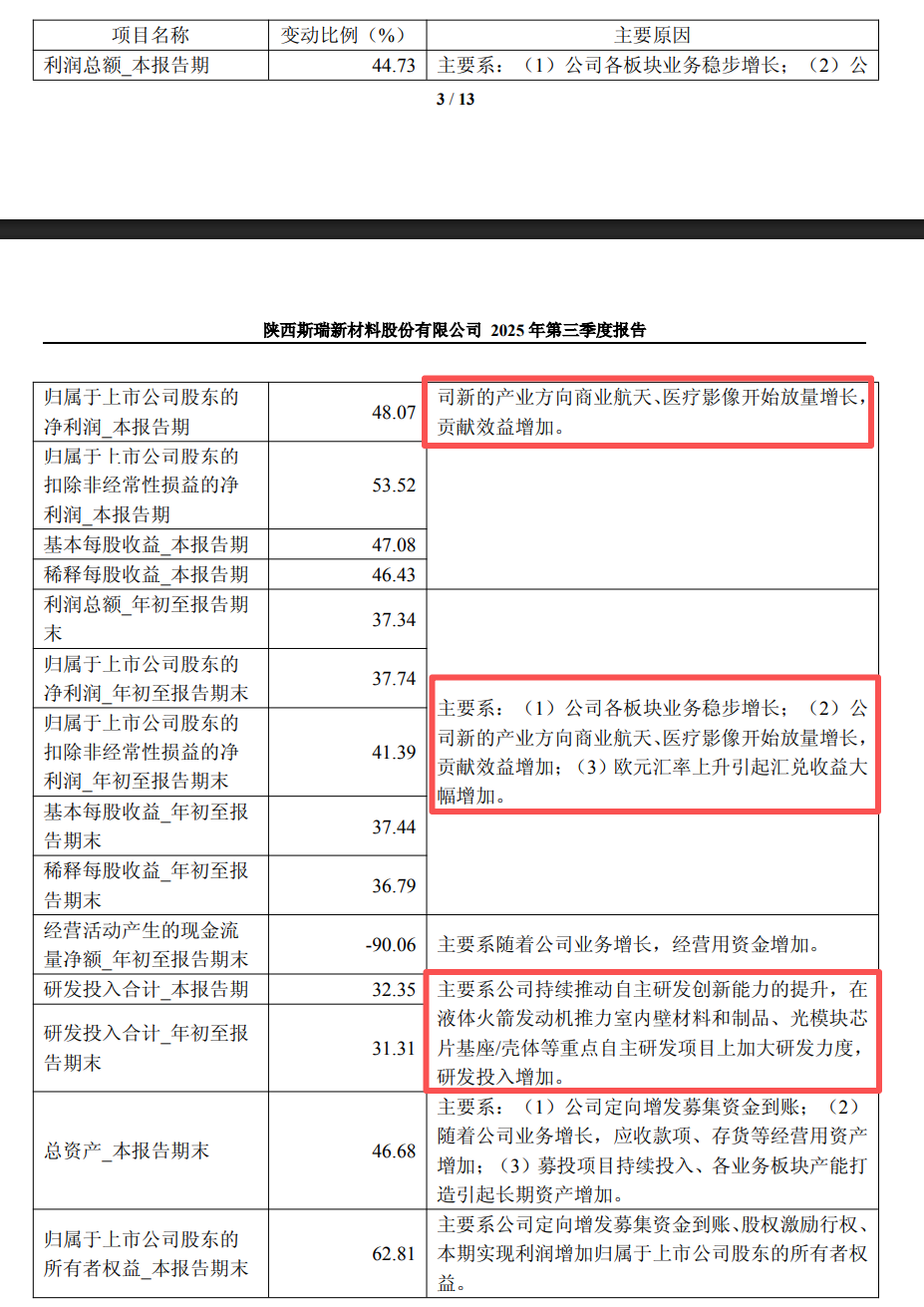 $斯瑞新材(SH688102)$ 昨天财报超预期啊。反复强调商业航天、医疗影像开始放量增长。