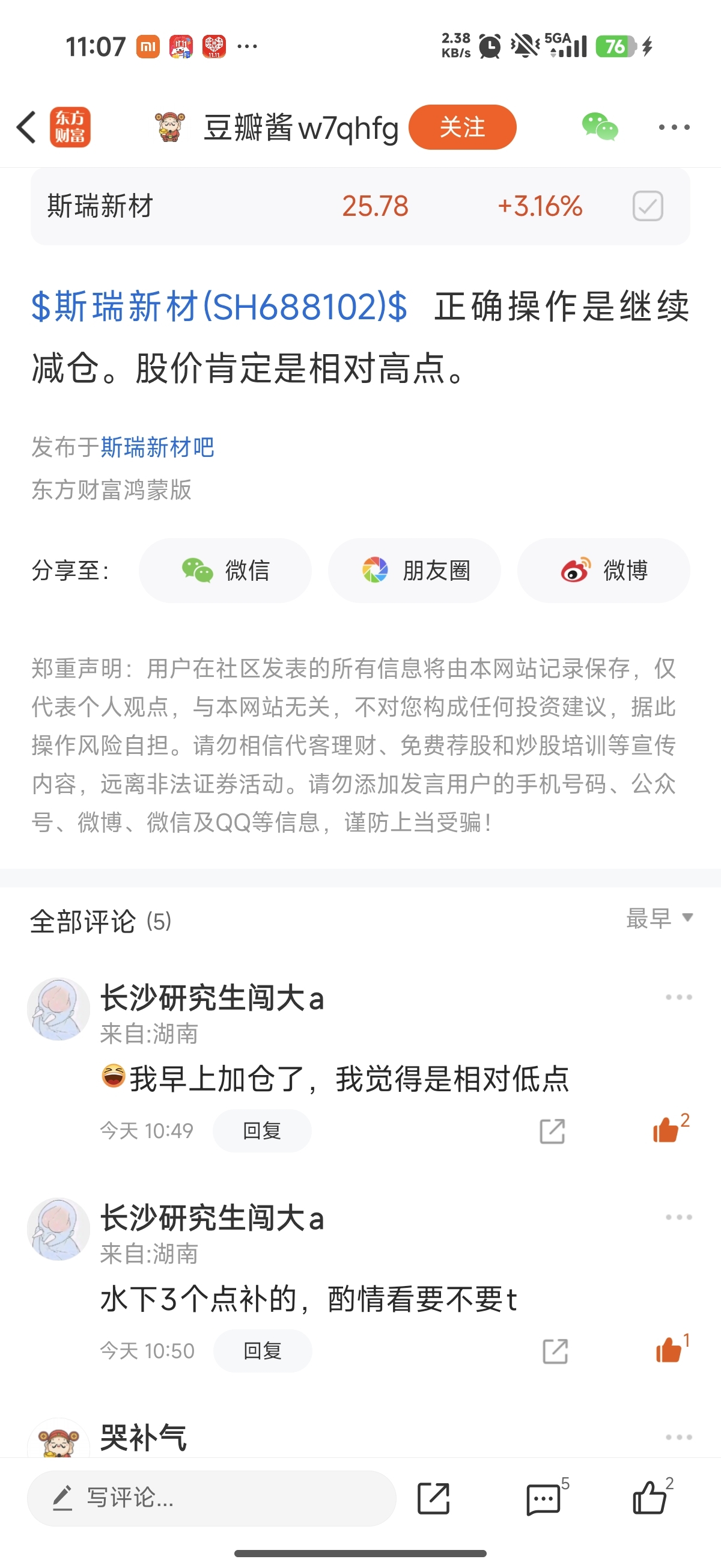 温馨提示: 1.根据《证券法》规定,禁止编造、传播虚假信息或者误导性信息,扰乱证券市场;2.用户在本社区发表的所有资料、言论等仅代表个人观点,与本网站立场无关,不对您构成任何投资建议。用户应基于自己的独立判断,自行决定证券投资并承担相应风险。《东方财富社区管理规定》
