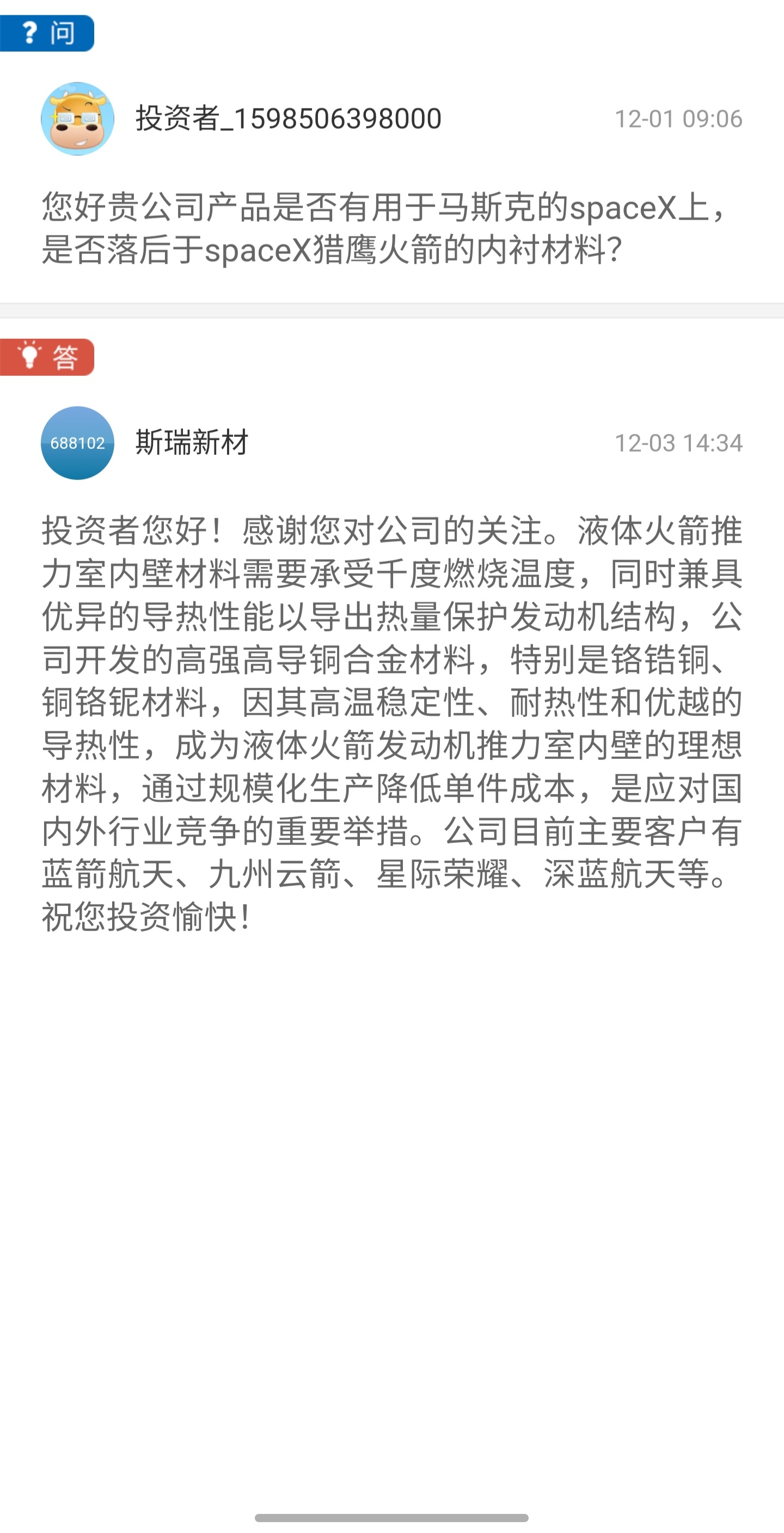 $斯瑞新材(SH688102)$ 都说是材料不耐高温的原因, 急的董秘马上出来回复。