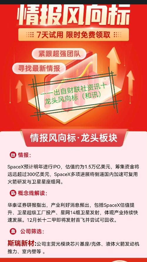 SpaceX供应商,保密协议下的王牌,长1十二甲的发射、后续的朱三、可核聚变、CR/VR高端医疗器械、CPO、算力核心材料,那一个都是热门赛道!