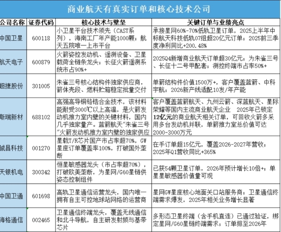 有真实订单和核心技术的商业航天龙头. 中国卫星 航天电子 信维通信 超捷股份 斯瑞新材 海格通信 中国卫通 。国产芯片 中国长城 龙芯中科 兆易创新轮动,看 盈方微 和 江化微,ai应用就看 浙文互联。