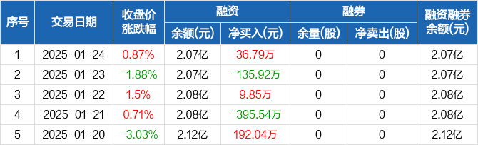 国力股份:融资净买入36.79万元,融资余额2.07亿元(01-24)
