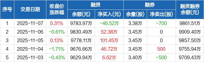 诺唯赞:融资净偿还46.52万元,融资余额9783.97万元(11-07)