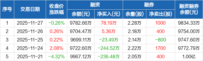 诺唯赞:融资净买入78.19万元,融资余额9782.66万元(11-27)