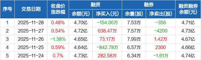 金宏气体:融资净偿还154.06万元,融资余额4.7亿元(11-28)