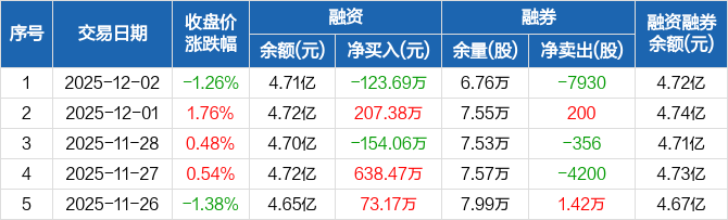金宏气体:融资净偿还123.69万元,融资余额4.71亿元(12-02)