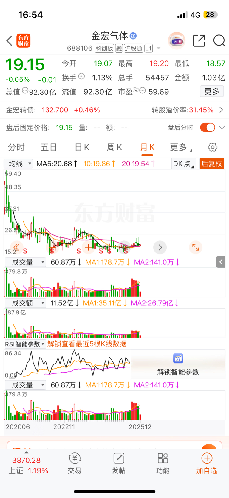 $金宏气体(SH688106)$ 最近那么多半导体巨无霸IPO,上下产业链也会慢慢成熟完善起来,19块的金宏不贵,业绩也在拐点期了,长线可以搞