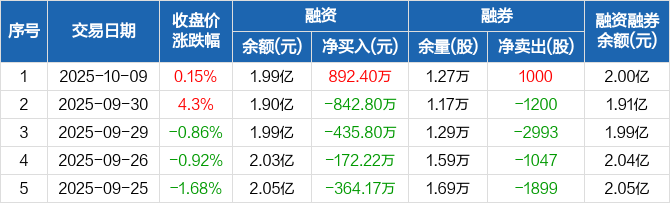 安路科技:融资净买入892.4万元,融资余额1.99亿元(10-09)