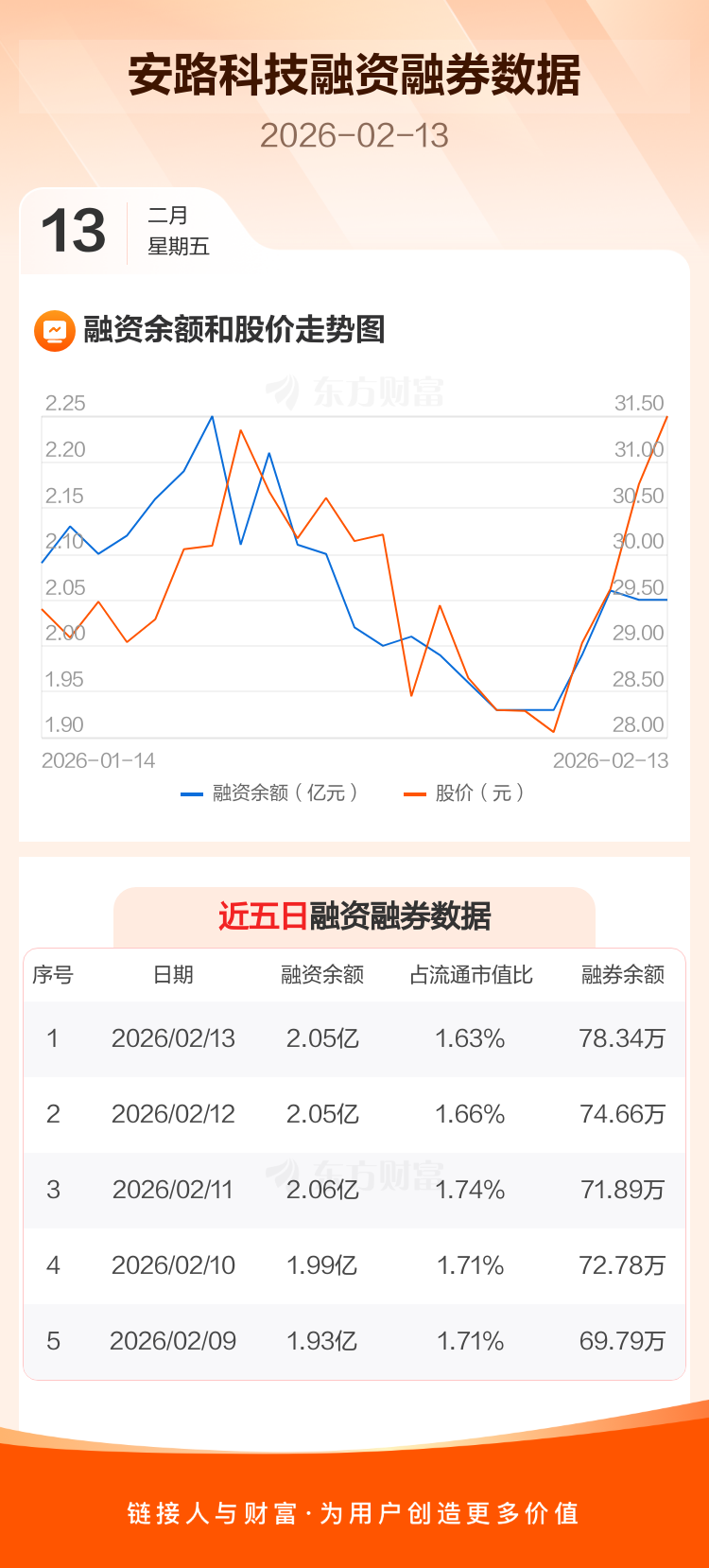 交易所最新数据显示,安路科技于2026年2月13日获融资买入2349.43万元,融资偿还2314.68万元,当日融资净买入34.74万元。目前,该股融资余额2.05亿,占流通市值比例为1.63%。
